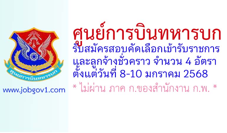 ศูนย์การบินทหารบก รับสมัครสอบคัดเลือกเข้ารับราชการ และลูกจ้างชั่วคราว 4 อัตรา ตั้งแต่วันที่ 8-10 มกราคม 2568