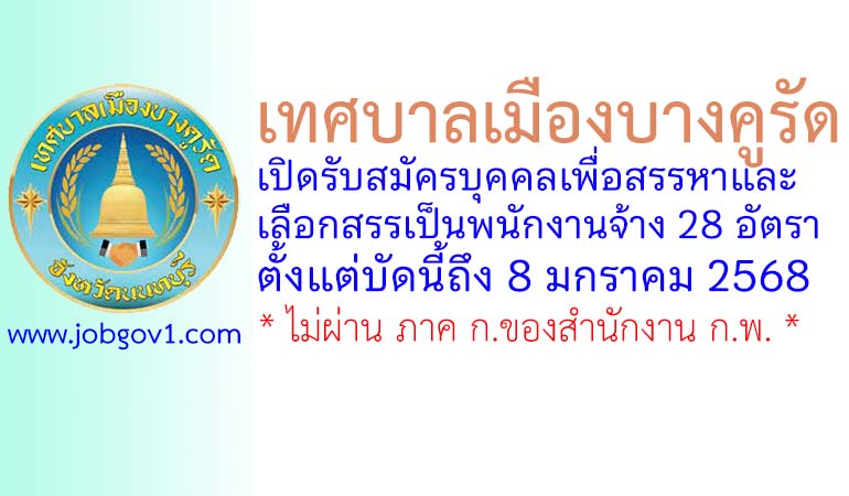 เทศบาลเมืองบางคูรัด รับสมัครบุคคลเพื่อสรรหาและเลือกสรรเป็นพนักงานจ้าง 28 อัตรา ตั้งแต่บัดนี้ถึง 8 มกราคม 2568