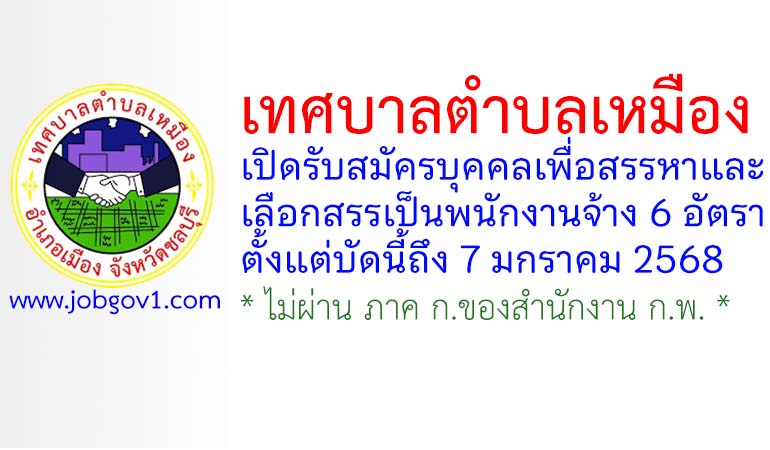 เทศบาลตำบลเหมือง รับสมัครบุคคลเพื่อสรรหาและเลือกสรรเป็นพนักงานจ้าง 6 อัตรา ตั้งแต่บัดนี้ถึง 7 มกราคม 2568
