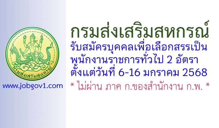 กรมส่งเสริมสหกรณ์ รับสมัครบุคคลเพื่อเลือกสรรเป็นพนักงานราชการทั่วไป 2 อัตรา ตั้งแต่วันที่ 6-16 มกราคม 2568