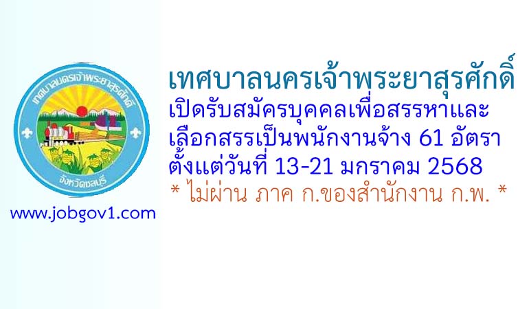 เทศบาลนครเจ้าพระยาสุรศักดิ์ รับสมัครบุคคลเพื่อสรรหาและเลือกสรรเป็นพนักงานจ้าง 61 อัตรา ตั้งแต่วันที่ 13-21 มกราคม 2568