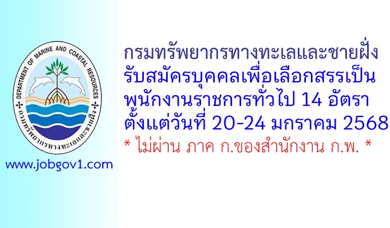 กรมทรัพยากรทางทะเลและชายฝั่ง รับสมัครบุคคลเพื่อเลือกสรรเป็นพนักงานราชการทั่วไป 14 อัตรา ตั้งแต่วันที่ 20-24 มกราคม 2568