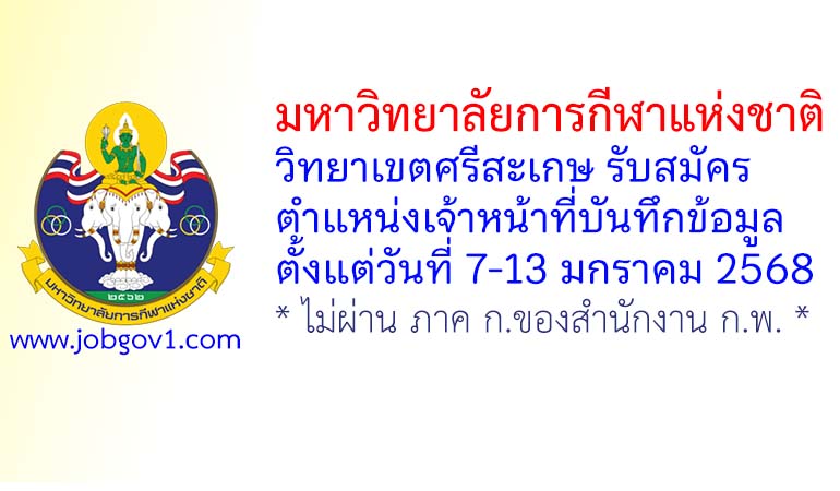 มหาวิทยาลัยการกีฬาแห่งชาติ วิทยาเขตศรีสะเกษ รับสมัครพนักงานจ้างเหมาบริการ ตำแหน่งเจ้าหน้าที่บันทึกข้อมูล ตั้งแต่วันที่ 7-13 มกราคม 2568