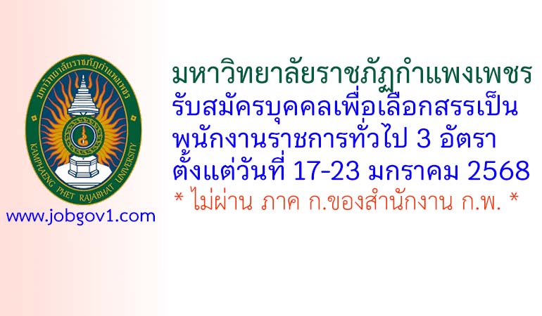 มหาวิทยาลัยราชภัฏกำแพงเพชร รับสมัครบุคคลเพื่อเลือกสรรเป็นพนักงานราชการทั่วไป 3 อัตรา ตั้งแต่วันที่ 17-23 มกราคม 2568