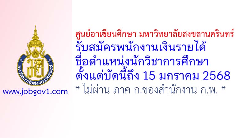 ศูนย์อาเซียนศึกษา มหาวิทยาลัยสงขลานครินทร์ รับสมัครพนักงานเงินรายได้ ตำแหน่งนักวิชาการศึกษา ตั้งแต่บัดนี้ถึง 15 มกราคม 2568