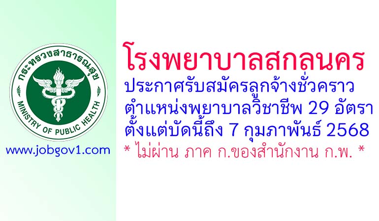 โรงพยาบาลสกลนคร รับสมัครลูกจ้างชั่วคราว ตำแหน่งพยาบาลวิชาชีพ 29 อัตรา ตั้งแต่บัดนี้ถึง 7 กุมภาพันธ์ 2568