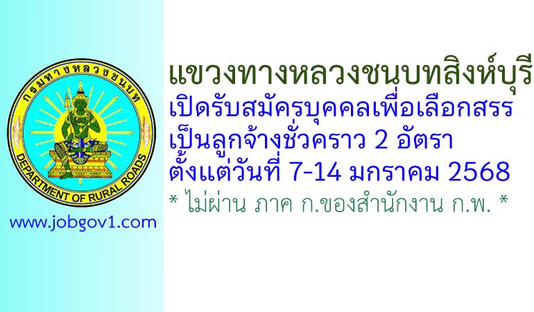 แขวงทางหลวงชนบทสิงห์บุรี รับสมัครบุคคลเพื่อเลือกสรรเป็นลูกจ้างชั่วคราว 2 อัตรา ตั้งแต่วันที่ 7-14 มกราคม 2568