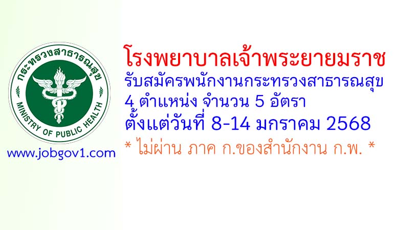 โรงพยาบาลเจ้าพระยายมราช รับสมัครพนักงานกระทรวงสาธารณสุขทั่วไป 5 อัตรา ตั้งแต่วันที่ 8-14 มกราคม 2568