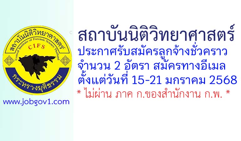สถาบันนิติวิทยาศาสตร์ รับสมัครลูกจ้างชั่วคราว 2 อัตรา ตั้งแต่วันที่ 15-21 มกราคม 2568