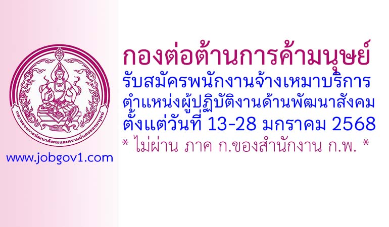 กองต่อต้านการค้ามนุษย์ รับสมัครพนักงานจ้างเหมาบริการ ตำแหน่งผู้ปฏิบัติงานด้านพัฒนาสังคม ตั้งแต่วันที่ 13-28 มกราคม 2568