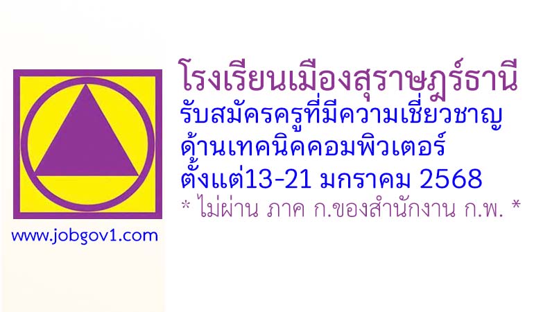 โรงเรียนเมืองสุราษฎร์ธานี รับสมัครลูกจ้างชั่วคราว ตำแหน่งครูที่มีความเชี่ยวชาญด้านเทคนิคคอมพิวเตอร์ ตั้งแต่วันที่ 13-21 มกราคม 2568