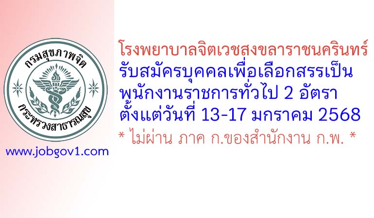 โรงพยาบาลจิตเวชสงขลาราชนครินทร์ รับสมัครบุคคลเพื่อเลือกสรรเป็นพนักงานราชการทั่วไป 2 อัตรา ตั้งแต่วันที่ 13-17 มกราคม 2568
