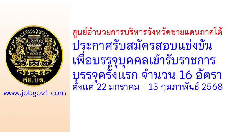 ศูนย์อำนวยการบริหารจังหวัดชายแดนภาคใต้ รับสมัครสอบแข่งขันเพื่อบรรจุบุคคลเข้ารับราชการ บรรจุครั้งแรก 16 อัตรา ตั้งแต่ 22 มกราคม – 13 กุมภาพันธ์ 2568