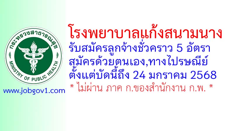 โรงพยาบาลแก้งสนามนาง รับสมัครลูกจ้างชั่วคราว 5 อัตรา ตั้งแต่บัดนี้ถึง 24 มกราคม 2568