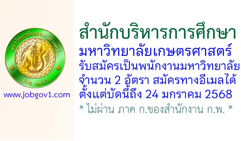 สำนักบริหารการศึกษา มหาวิทยาลัยเกษตรศาสตร์ รับสมัครเป็นพนักงานมหาวิทยาลัย 2 อัตรา ตั้งแต่บัดนี้ถึง 24 มกราคม 2568