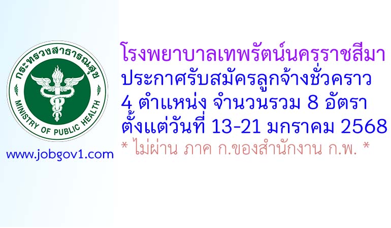 โรงพยาบาลเทพรัตน์นครราชสีมา รับสมัครลูกจ้างชั่วคราว 8 อัตรา ตั้งแต่วันที่ 13-21 มกราคม 2568