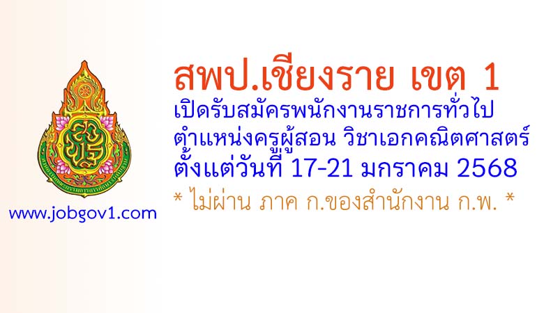 สพป.เชียงราย เขต 1 รับสมัครพนักงานราชการ ตำแหน่งครูผู้สอน วิชาเอกคณิตศาสตร์ ตั้งแต่วันที่ 17-21 มกราคม 2568