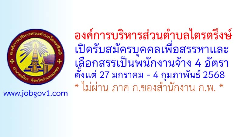 องค์การบริหารส่วนตำบลไตรตรึงษ์ รับสมัครบุคคลเพื่อสรรหาและเลือกสรรเป็นพนักงานจ้าง 4 อัตรา ตั้งแต่ 27 มกราคม – 4 กุมภาพันธ์ 2568