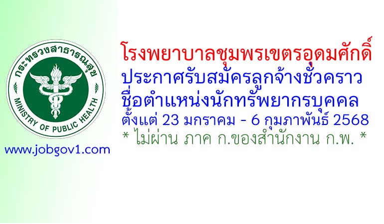 โรงพยาบาลชุมพรเขตรอุดมศักดิ์ รับสมัครลูกจ้างชั่วคราว ตำแหน่งนักทรัพยากรบุคคล ตั้งแต่ 23 มกราคม – 6 กุมภาพันธ์ 2568