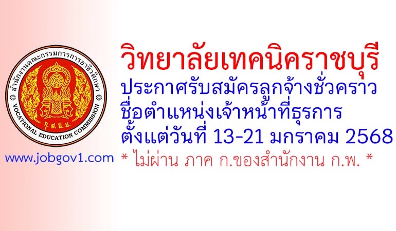 วิทยาลัยเทคนิคราชบุรี รับสมัครลูกจ้างชั่วคราว ตำแหน่งเจ้าหน้าที่ธุรการ ตั้งแต่วันที่ 13-21 มกราคม 2568