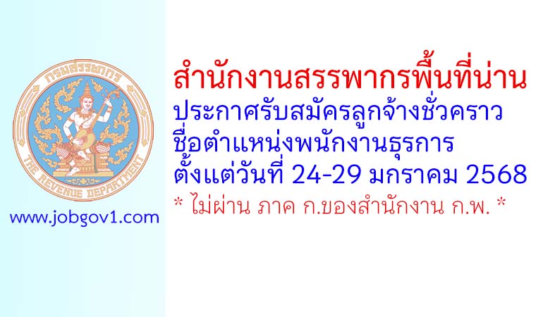 สำนักงานสรรพากรพื้นที่น่าน รับสมัครลูกจ้างชั่วคราว ตำแหน่งพนักงานธุรการ ตั้งแต่วันที่ 24-29 มกราคม 2568
