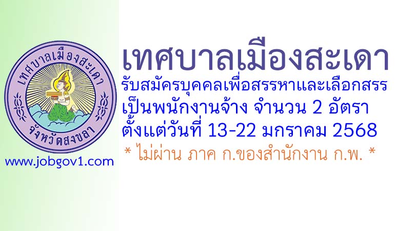 เทศบาลเมืองสะเดา รับสมัครบุคคลเพื่อสรรหาและเลือกสรรเป็นพนักงานจ้าง 2 อัตรา ตั้งแต่วันที่ 13-22 มกราคม 2568