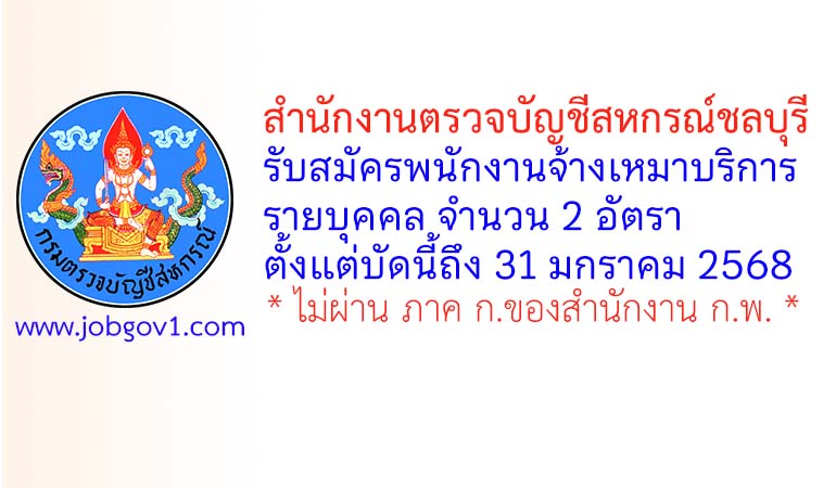 สำนักงานตรวจบัญชีสหกรณ์ชลบุรี รับสมัครพนักงานจ้างเหมาบริการรายบุคคล 2 อัตรา ตั้งแต่บัดนี้ถึง 31 มกราคม 2568