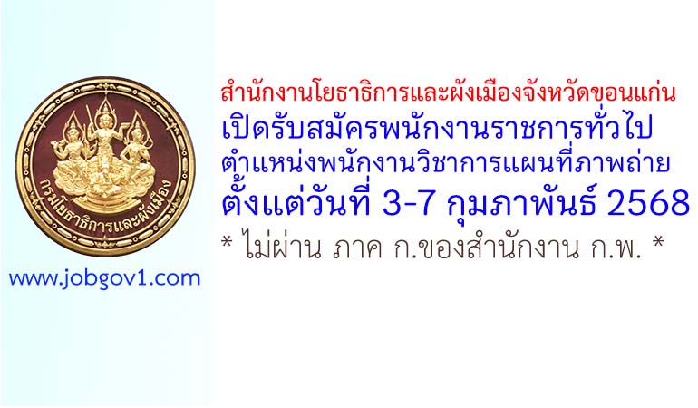 สำนักงานโยธาธิการและผังเมืองจังหวัดขอนแก่น รับสมัครพนักงานราชการทั่วไป ตำแหน่งพนักงานวิชาการแผนที่ภาพถ่าย ตั้งแต่วันที่ 3-7 กุมภาพันธ์ 2568