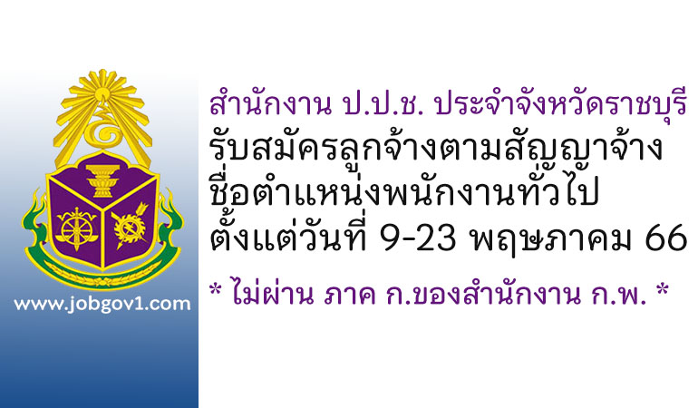 สำนักงาน ป.ป.ช. ประจำจังหวัดราชบุรี รับสมัครลูกจ้างตามสัญญาจ้าง ตำแหน่งพนักงานทั่วไป ตั้งแต่วันที่ 9-23 พฤษภาคม 2566