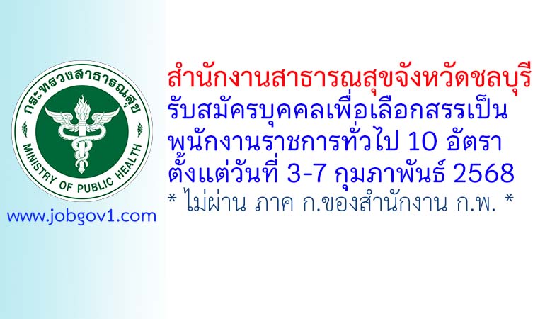 สำนักงานสาธารณสุขจังหวัดชลบุรี รับสมัครบุคคลเพื่อเลือกสรรเป็นพนักงานราชการทั่วไป 10 อัตรา ตั้งแต่วันที่ 3-7 กุมภาพันธ์ 2568