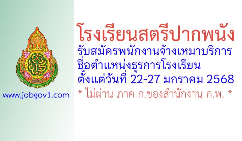 โรงเรียนสตรีปากพนัง รับสมัครพนักงานจ้างเหมาบริการ ตำแหน่งธุรการโรงเรียน ตั้งแต่วันที่ 22-27 มกราคม 2568