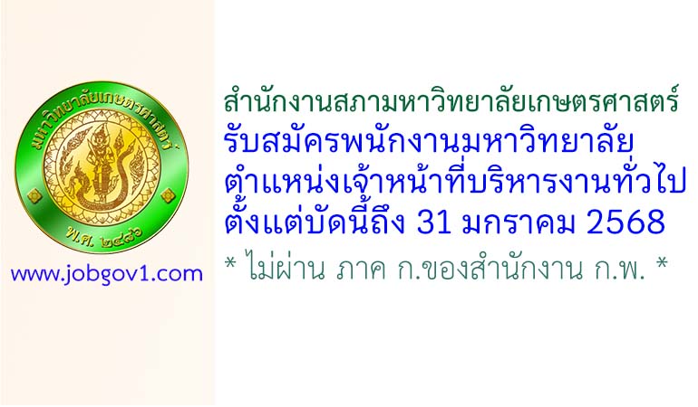 สำนักงานสภามหาวิทยาลัยเกษตรศาสตร์ รับสมัครพนักงานมหาวิทยาลัย ตำแหน่งเจ้าหน้าที่บริหารงานทั่วไป ตั้งแต่บัดนี้ถึง 31 มกราคม 2568
