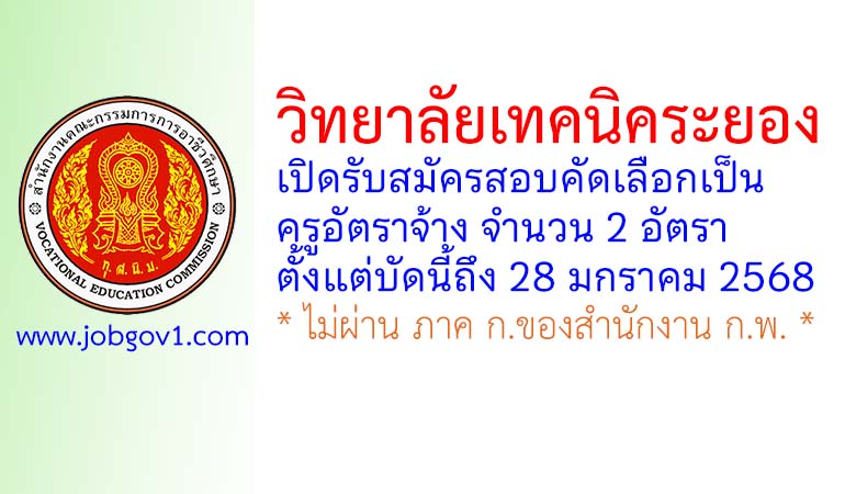 วิทยาลัยเทคนิคระยอง รับสมัครครูอัตราจ้าง จำนวน 2 อัตรา ตั้งแต่บัดนี้ถึง 28 มกราคม 2568