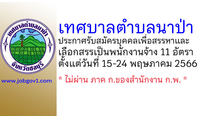 เทศบาลตำบลนาป่า รับสมัครบุคคลเพื่อสรรหาและเลือกสรรเป็นพนักงานจ้าง 11 อัตรา ตั้งแต่วันที่ 15-24 พฤษภาคม 2566