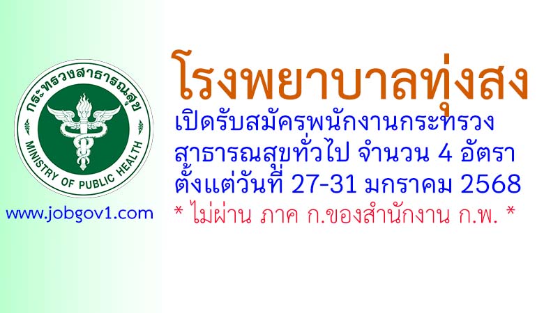 โรงพยาบาลทุ่งสง รับสมัครพนักงานกระทรวงสาธารณสุขทั่วไป 4 อัตรา ตั้งแต่วันที่ 27-31 มกราคม 2568