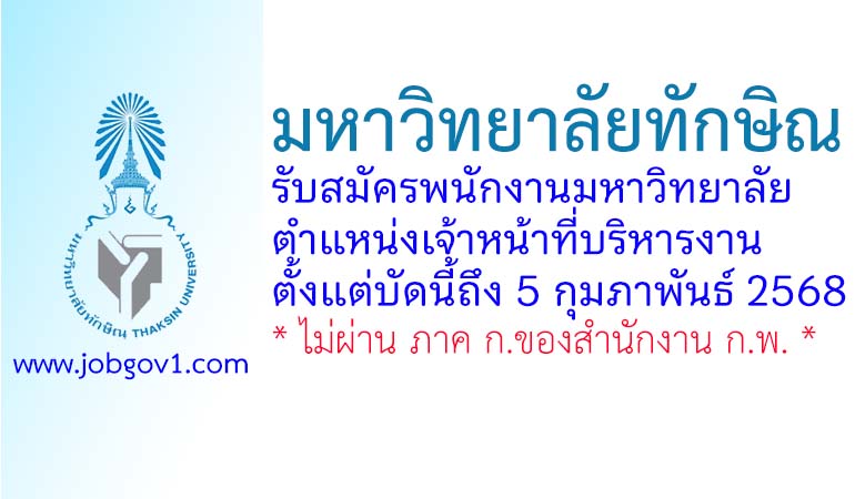 มหาวิทยาลัยทักษิณ รับสมัครพนักงานมหาวิทยาลัย ตำแหน่งเจ้าหน้าที่บริหารงาน ตั้งแต่บัดนี้ถึง 5 กุมภาพันธ์ 2568