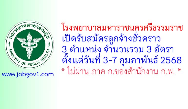 โรงพยาบาลมหาราชนครศรีธรรมราช รับสมัครลูกจ้างชั่วคราว 3 อัตรา ตั้งแต่วันที่ 3-7 กุมภาพันธ์ 2568