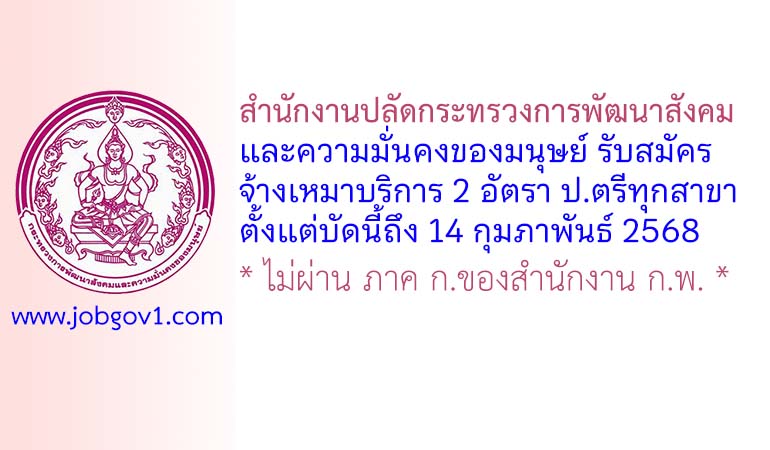 สำนักงานปลัดกระทรวงการพัฒนาสังคมและความมั่นคงของมนุษย์ รับสมัครจ้างเหมาบริการ 2 อัตรา ตั้งแต่บัดนี้ถึง 14 กุมภาพันธ์ 2568