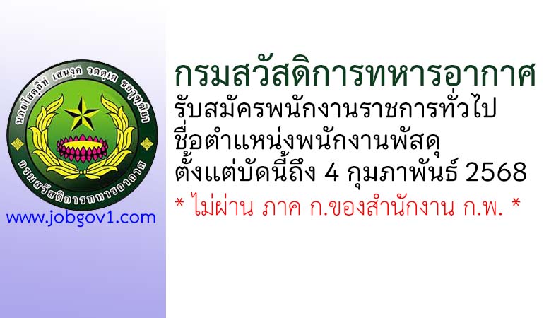 กรมสวัสดิการทหารอากาศ รับสมัครพนักงานราชการทั่วไป ตำแหน่งพนักงานพัสดุ ตั้งแต่บัดนี้ถึง 4 กุมภาพันธ์ 2568