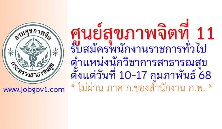 ประกาศกรมสุขภาพจิต เรื่อง รับสมัครบุคคลเพื่อเลือกสรรเป็นพนักงานราชการทั่วไป ในตำแหน่งนักวิชาการสาธารณสุข ศูนย์สุขภาพจิตที่ 11