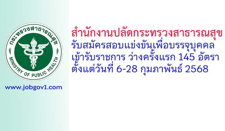 สำนักงานปลัดกระทรวงสาธารณสุข รับสมัครสอบแข่งขันเพื่อบรรจุบุคคลเข้ารับราชการ ว่างครั้งแรก 145 อัตรา ตั้งแต่วันที่ 6-28 กุมภาพันธ์ 2568