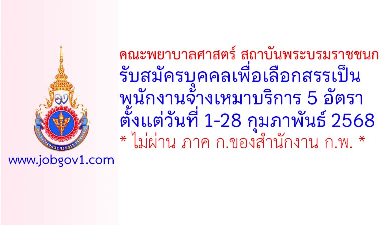 คณะพยาบาลศาสตร์ สถาบันพระบรมราชชนก รับสมัครบุคคลเพื่อเลือกสรรจ้างเหมาบริการ 5 อัตรา ตั้งแต่วันที่ 1-28 กุมภาพันธ์ 2568