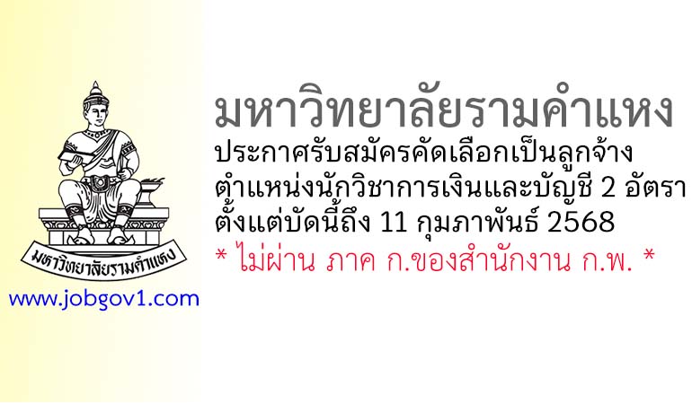 มหาวิทยาลัยรามคำแหง รับสมัครคัดเลือกเป็นลูกจ้าง ตำแหน่งนักวิชาการเงินและบัญชี 2 อัตรา ตั้งแต่บัดนี้ถึง 11 กุมภาพันธ์ 2568