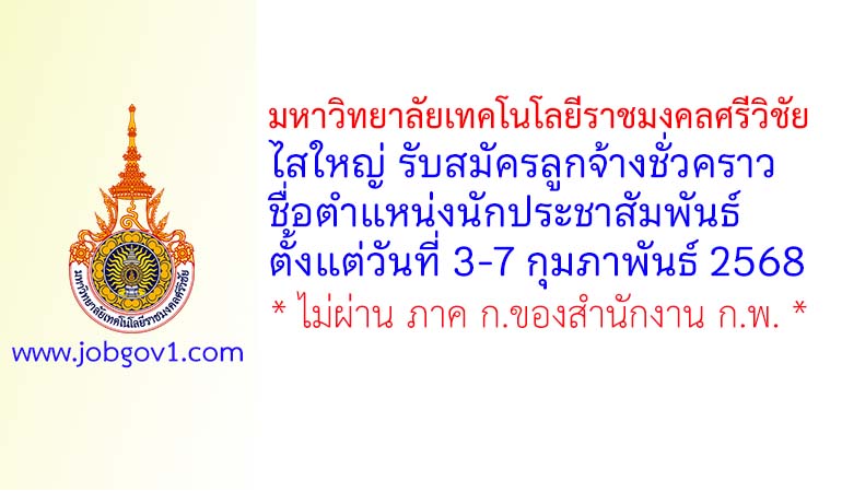 มหาวิทยาลัยเทคโนโลยีราชมงคลศรีวิชัย ไสใหญ่ รับสมัครลูกจ้างชั่วคราว ตำแหน่งนักประชาสัมพันธ์ ตั้งแต่วันที่ 3-7 กุมภาพันธ์ 2568