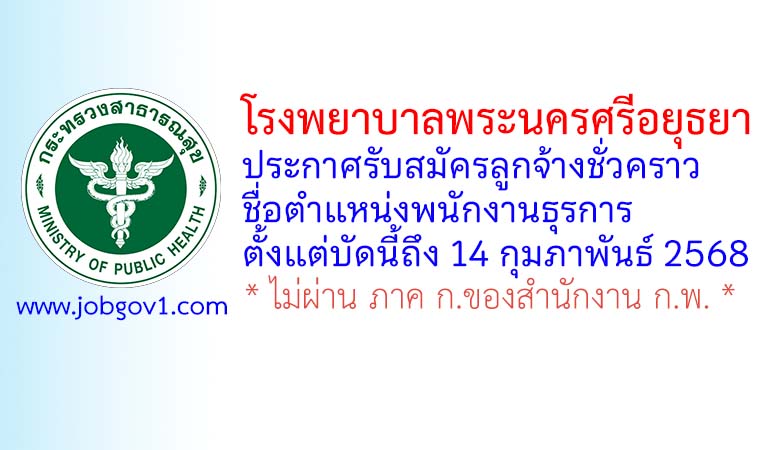 โรงพยาบาลพระนครศรีอยุธยา รับสมัครลูกจ้างชั่วคราว ตำแหน่งพนักงานธุรการ ตั้งแต่บัดนี้ถึง 14 กุมภาพันธ์ 2568