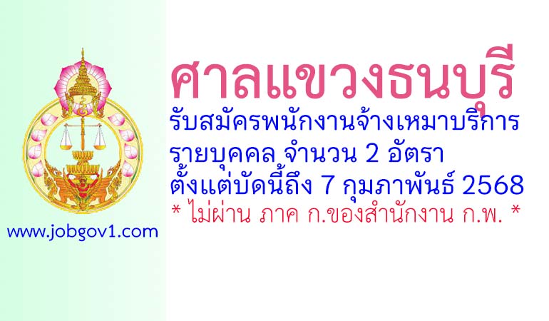 ศาลแขวงธนบุรี รับสมัครพนักงานจ้างเหมาบริการ 2 อัตรา ตั้งแต่บัดนี้ถึง 7 กุมภาพันธ์ 2568