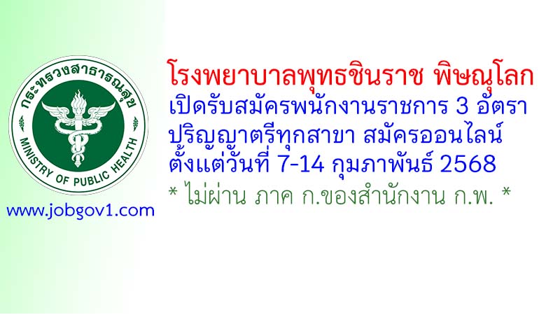 โรงพยาบาลพุทธชินราช พิษณุโลก รับสมัครบุคคลเพื่อเลือกสรรเป็นพนักงานราชการทั่วไป 3 อัตรา ตั้งแต่วันที่ 7-14 กุมภาพันธ์ 2568