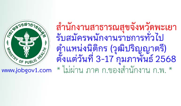 สำนักงานสาธารณสุขจังหวัดพะเยา รับสมัครพนักงานราชการทั่วไป ตำแหน่งนิติกร ตั้งแต่วันที่ 3-17 กุมภาพันธ์ 2568