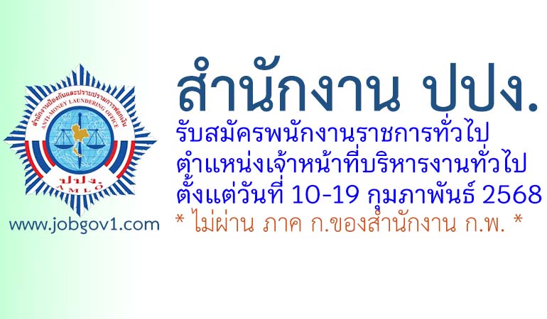 สำนักงาน ปปง. รับสมัครพนักงานราชการทั่วไป ตำแหน่งเจ้าหน้าที่บริหารงานทั่วไป ตั้งแต่วันที่ 10-19 กุมภาพันธ์ 2568
