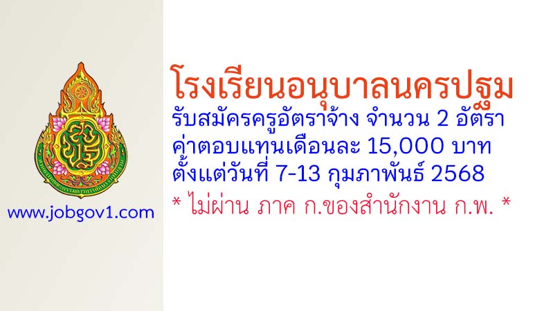 โรงเรียนอนุบาลนครปฐม รับสมัครครูอัตราจ้าง จำนวน 2 อัตรา ตั้งแต่วันที่ 7-13 กุมภาพันธ์ 2568